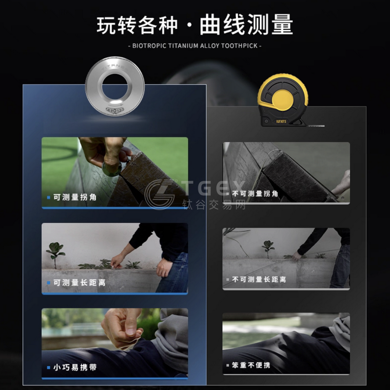 钛生活品 钛尺 TITANER北斗作钛合金圆环尺战术edc工具迷你圆圈尺吊牌文玩玩具