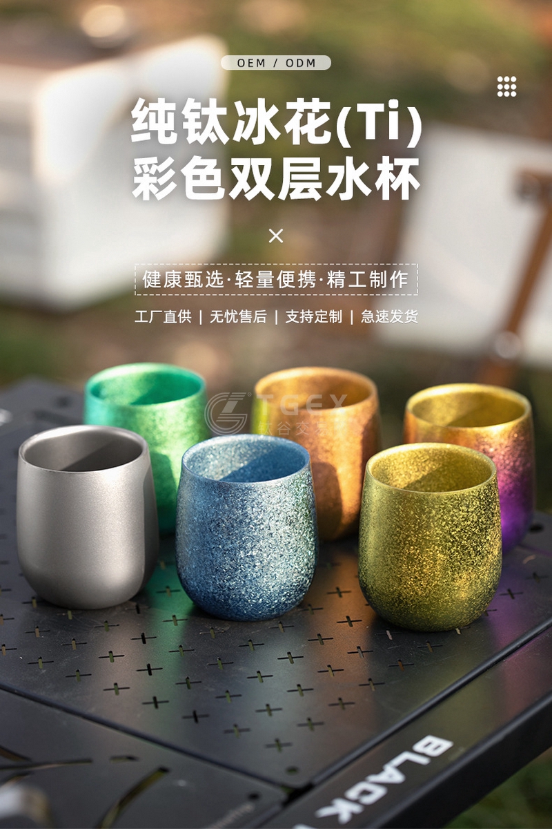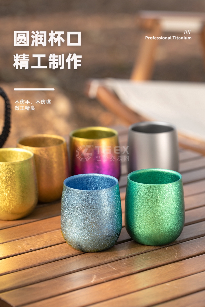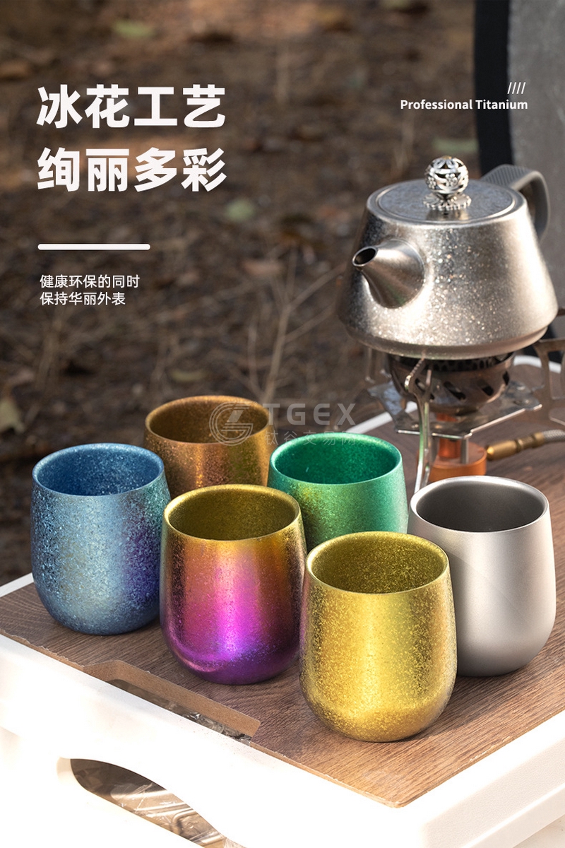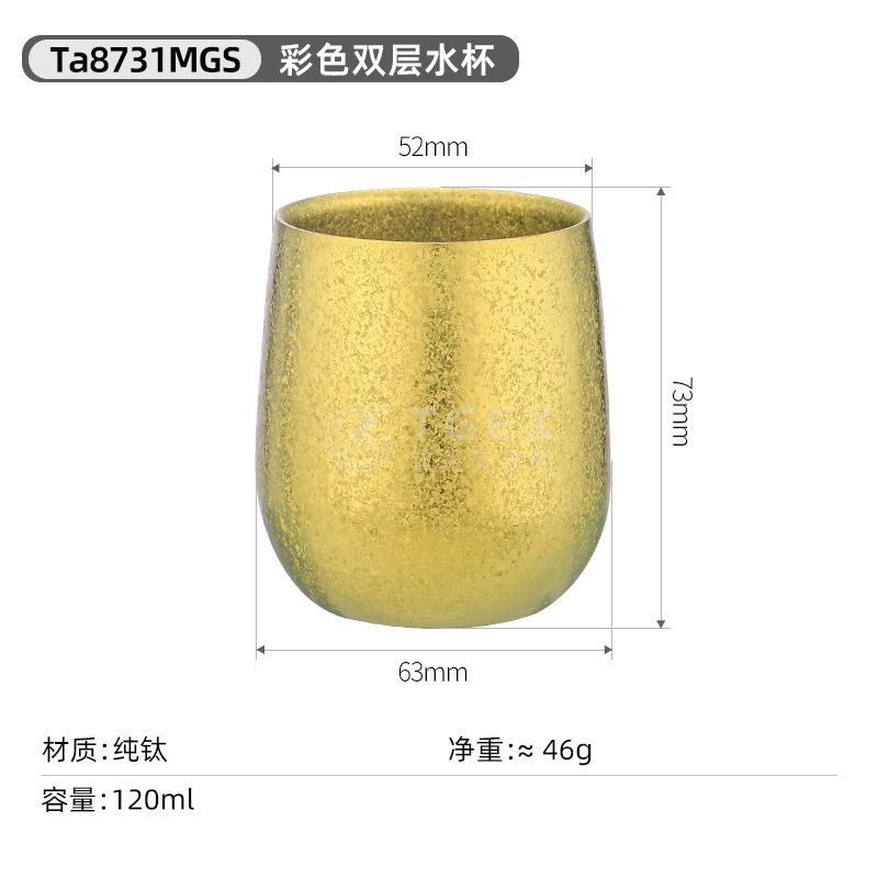 纯钛双层鹅蛋杯冰花炫彩隔热防烫钛杯C