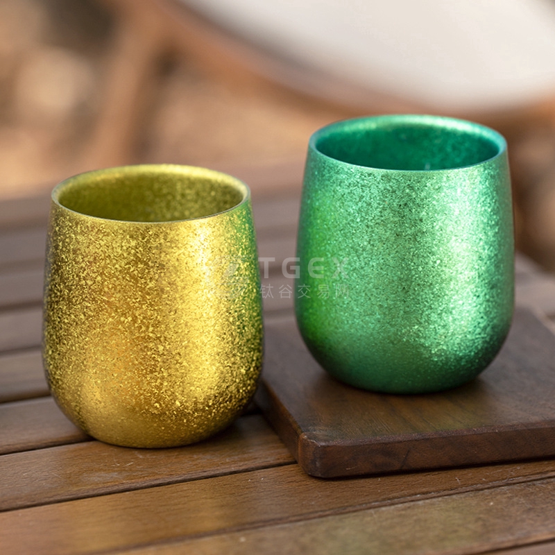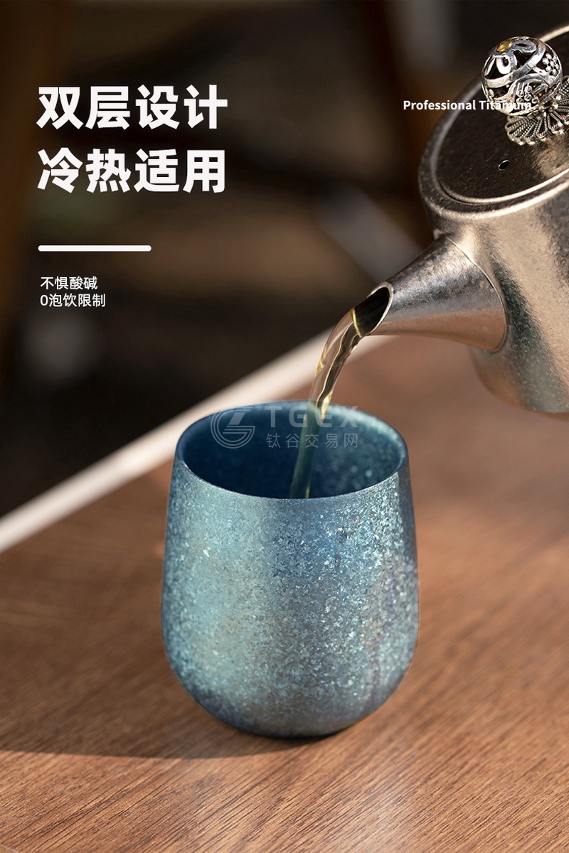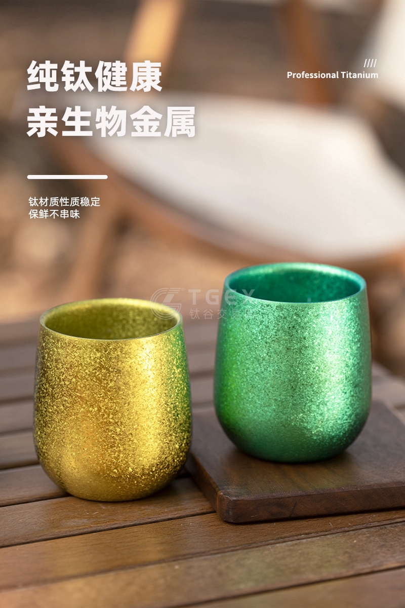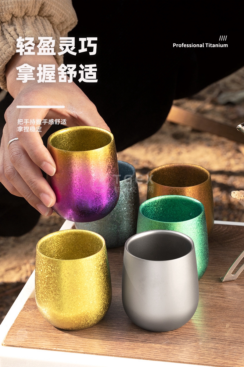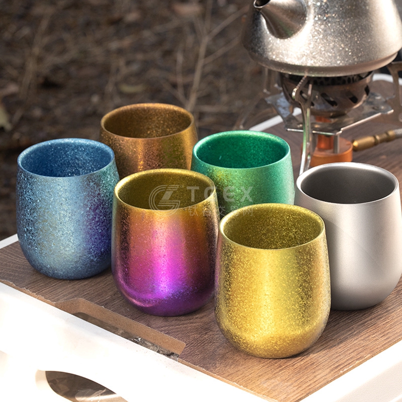 纯钛双层鹅蛋杯冰花炫彩隔热防烫钛杯C