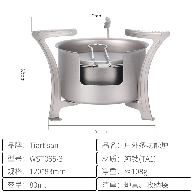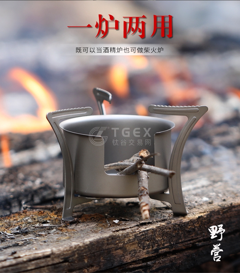 户外纯钛酒精炉多功能柴火炉露营野餐便携式炉具C