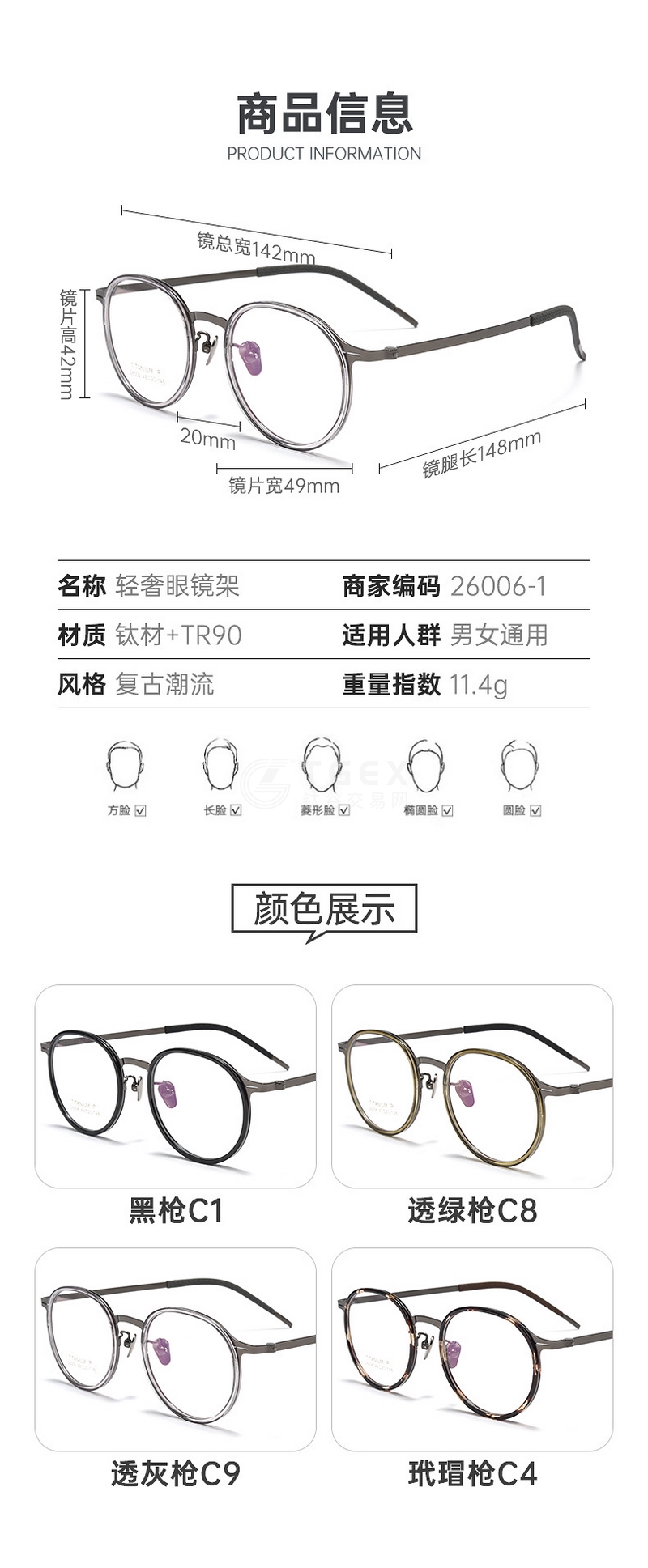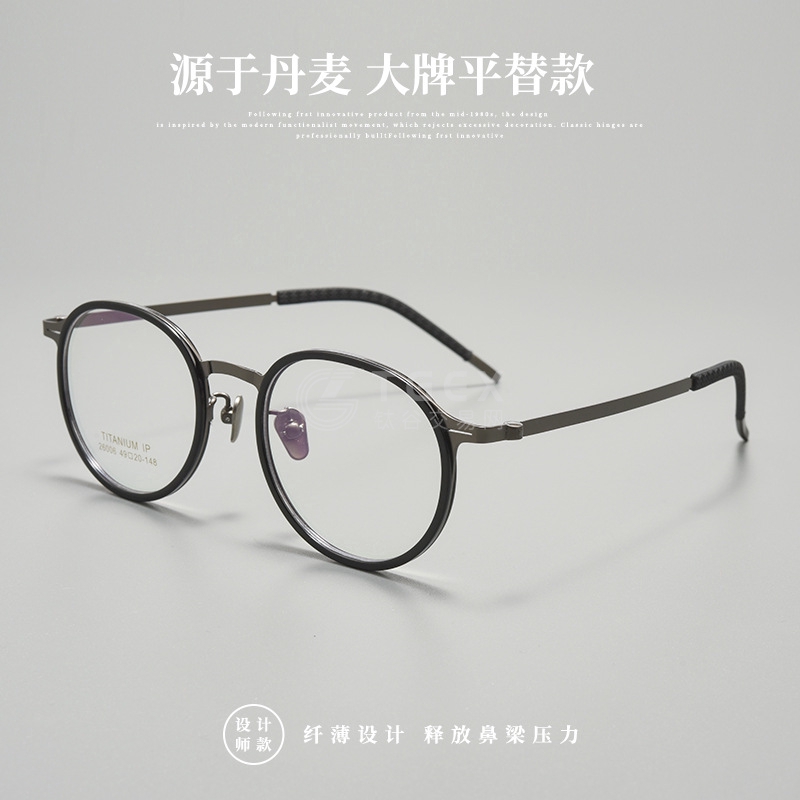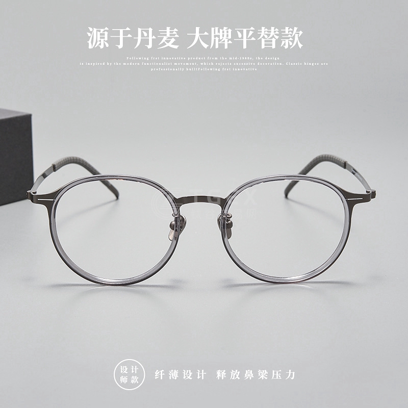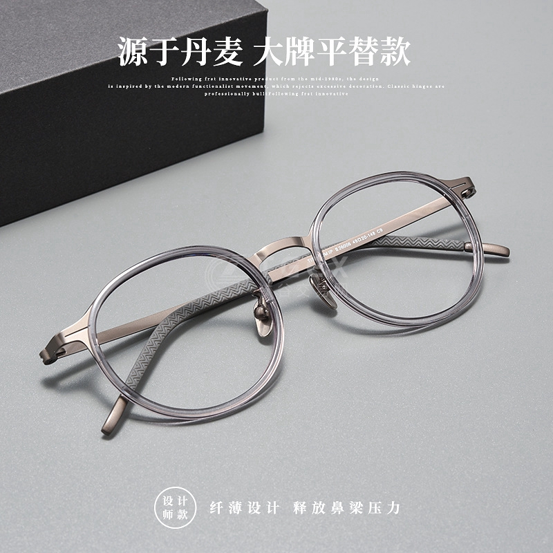 林德款无螺丝架复古文艺小框眼镜架加厚胶圈厚边近视眼镜超轻纯钛C