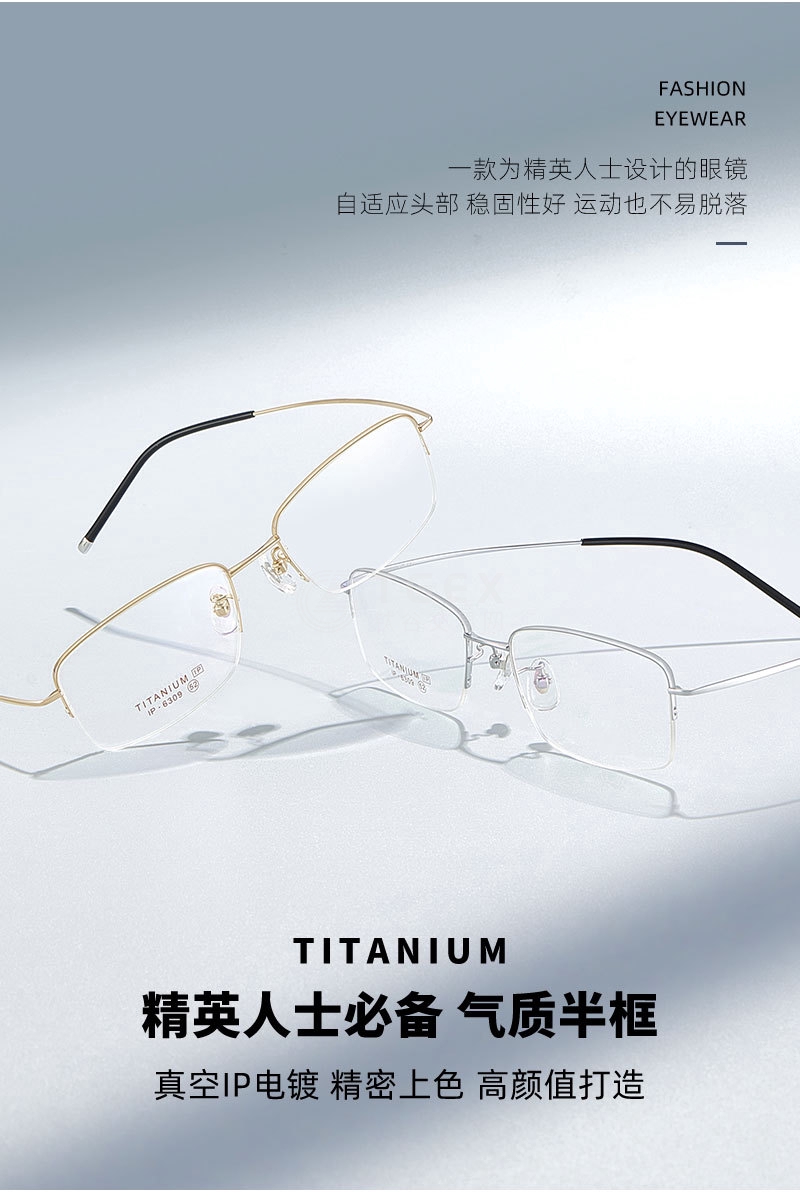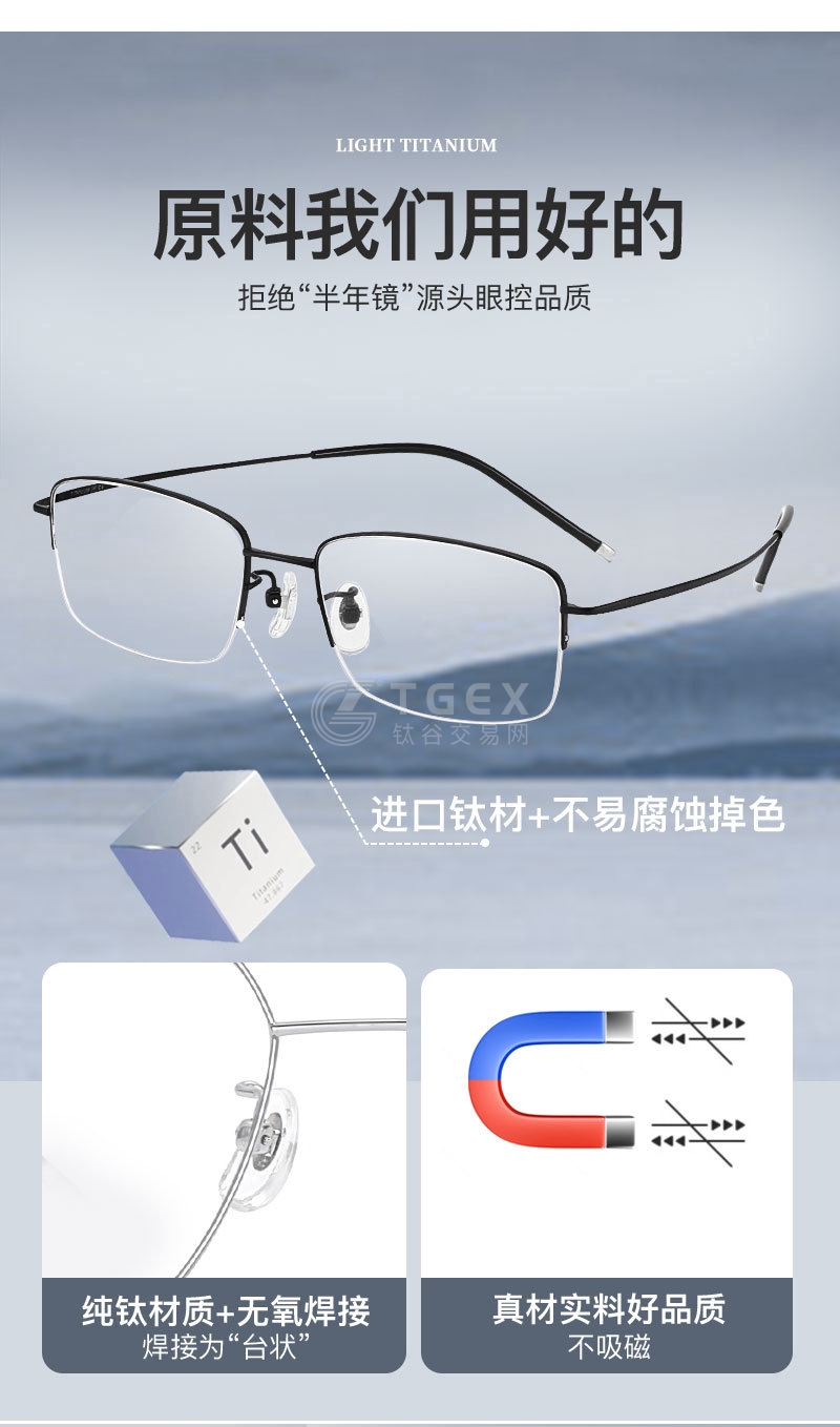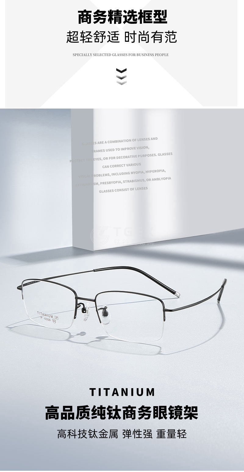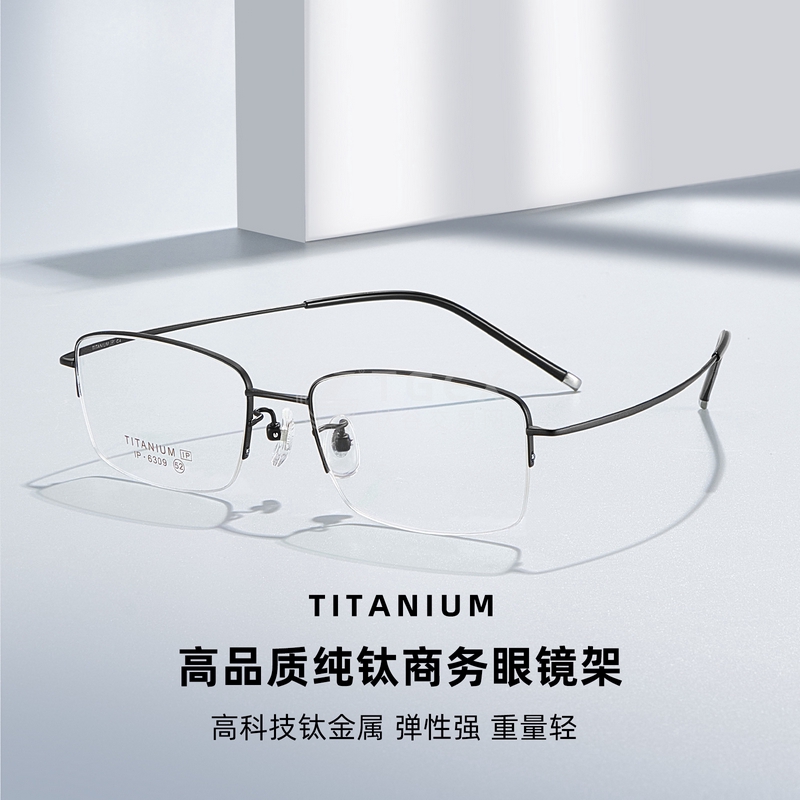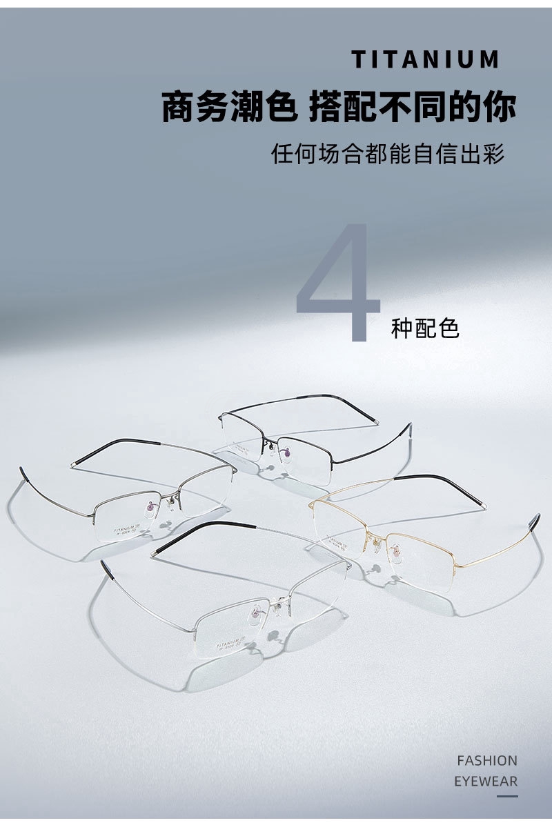 高科技商务男士半框钛架眼镜框超轻眼镜可配近视度数C