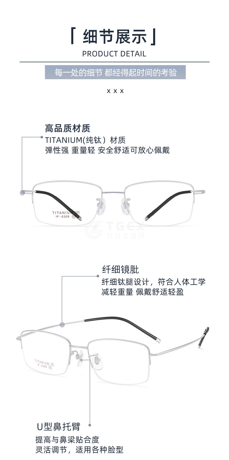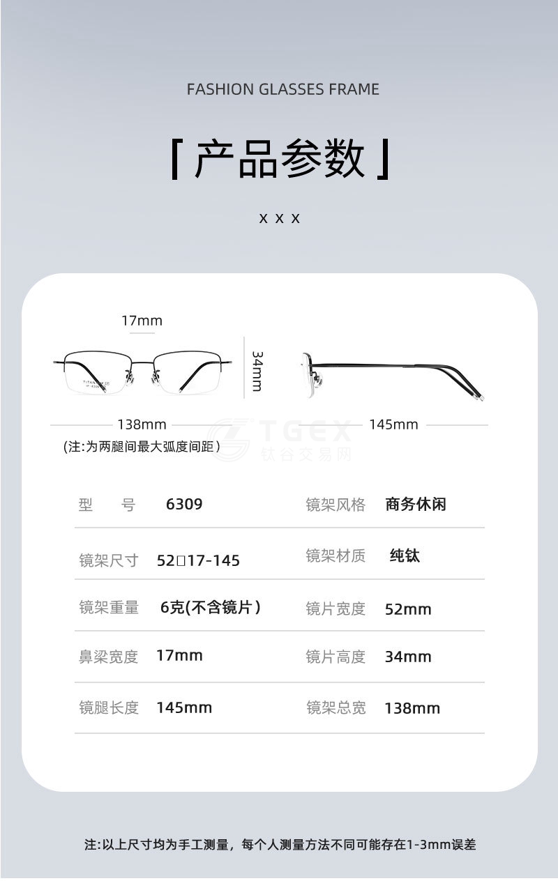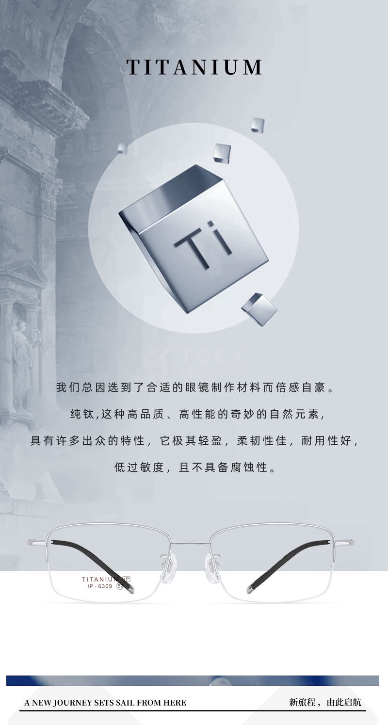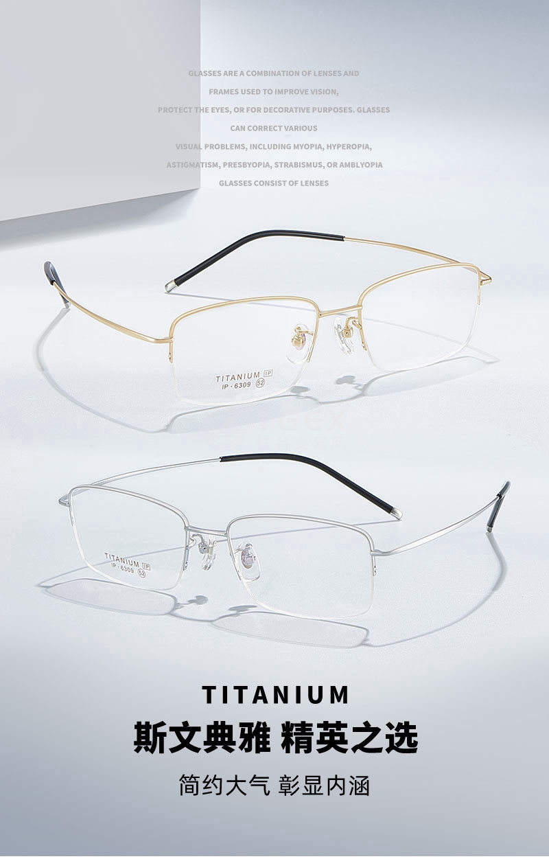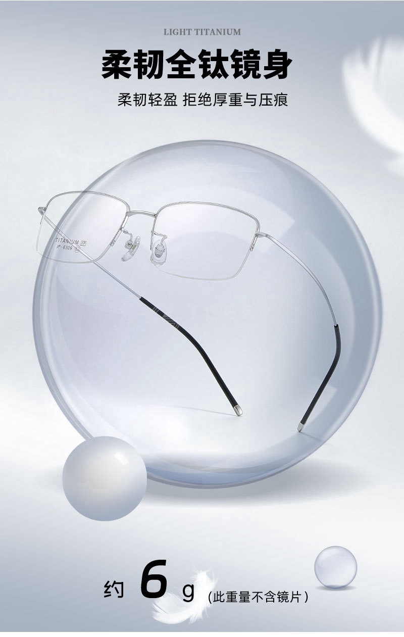 高科技商务男士半框钛架眼镜框超轻眼镜可配近视度数C