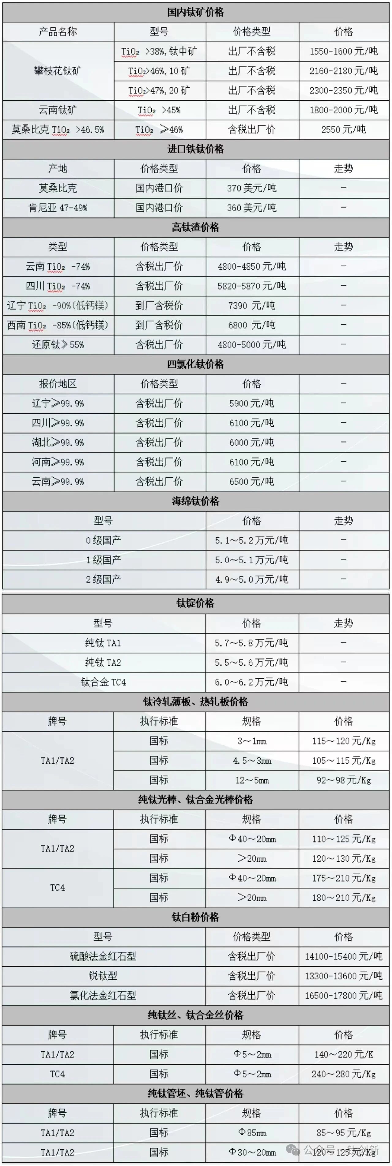 钛行业价格消息具有时效性,具体价格可自行咨询相关厂家。
