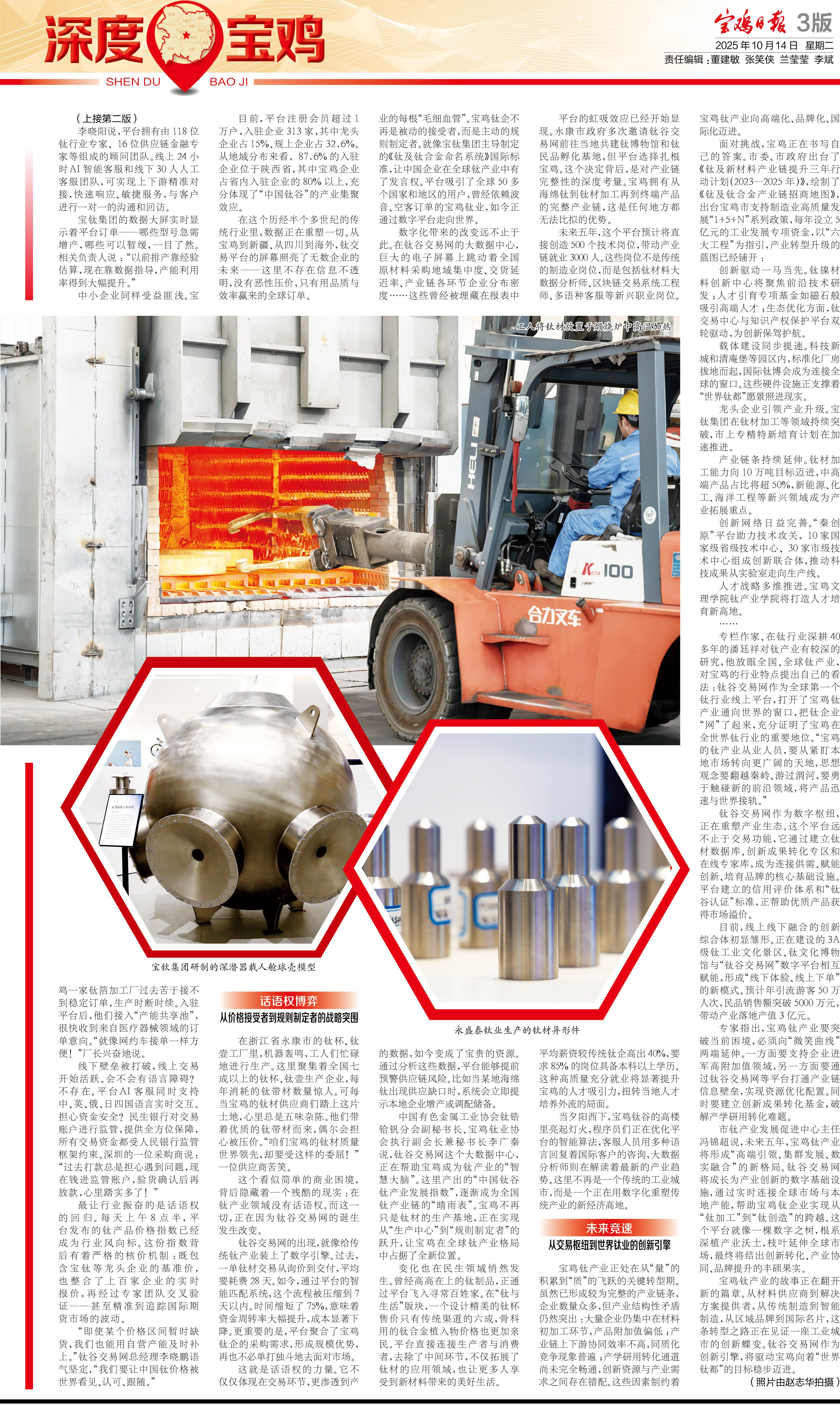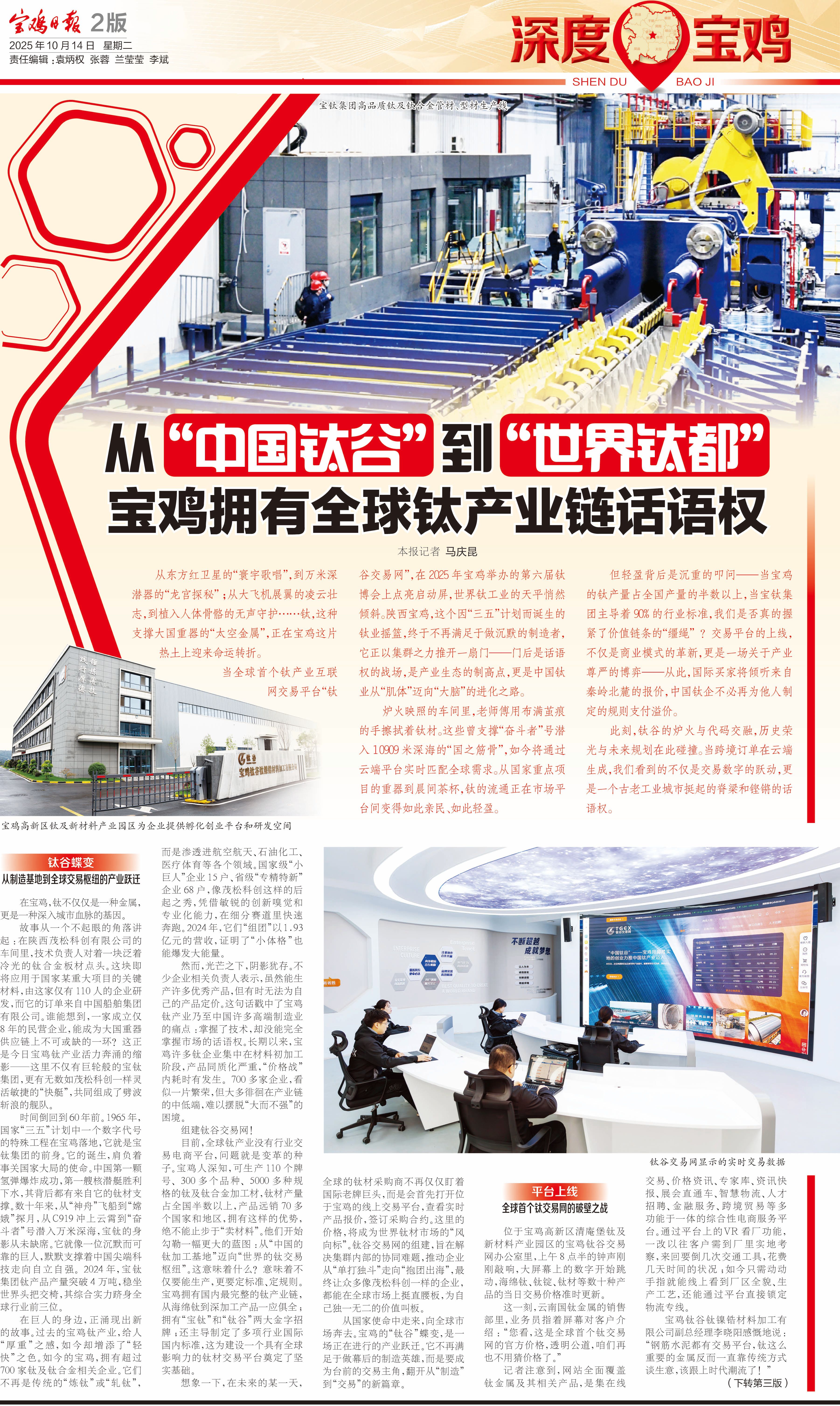 从国家使命中走来,向全球市场奔去。宝鸡的“钛谷”蝶变,是一场正在进行的产业跃迁。它不再满足于做幕后的制造英雄,而是要成为台前的交易主角,翻开从“制造”到“交易”的新篇章。
