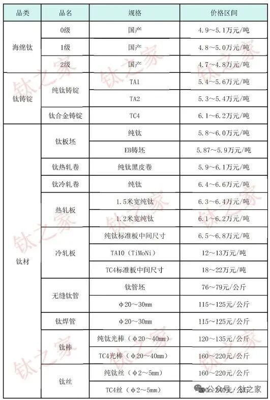 注:以上价格由【钛之家】收集整理,并不代表企业间的最终成交价格,仅用于行业参考。如为此发生争议,【钛之家】不承担相关责任。
