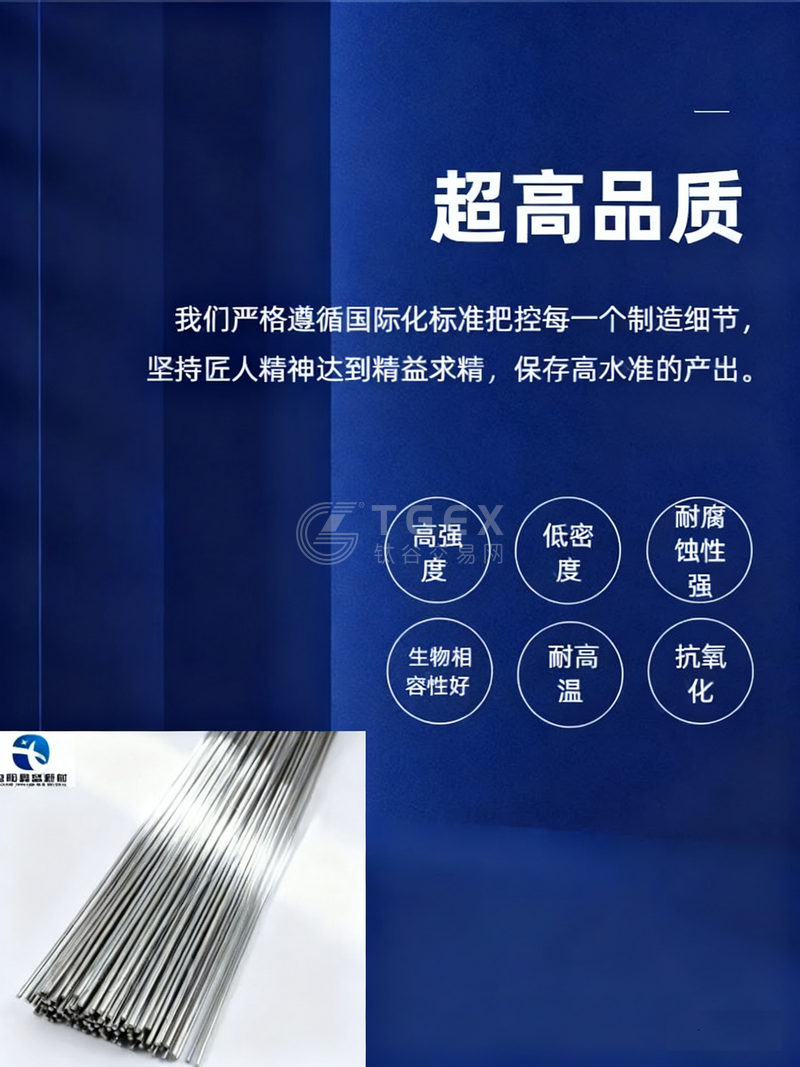 • 性能描述:1. TA3、Gr3材质:金相评级7级以上,抗拉强度达585MPa以上,组织结构均匀,性能稳定,支持根据客户需求定制;2. TC4、TC4ELI、Gr5、Gr5ELI材质:金相评级A5以内,抗拉强度达825MPa,兼具高强度与优异生物相容性;3. 产品整体具备出色的抗疲劳、耐磨损、抗腐蚀特性,是医疗器械及人体植入物领域最常用的医学生物材料之一。