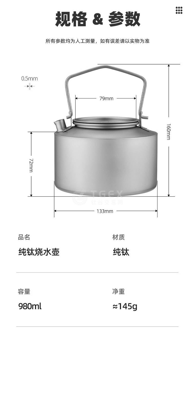 纯钛烧水壶户外露营便携式旅行泡茶壶C