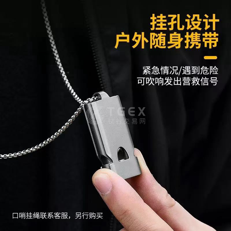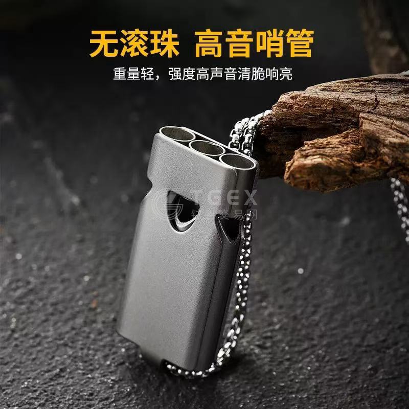 工厂现货三管钛合金户外野营救生口哨 双孔爆音哨随身便携工具edc(L)