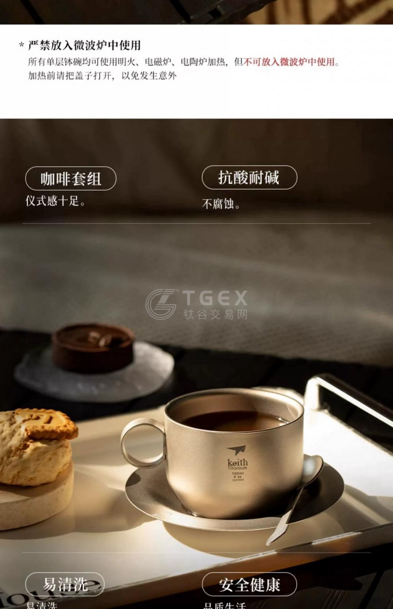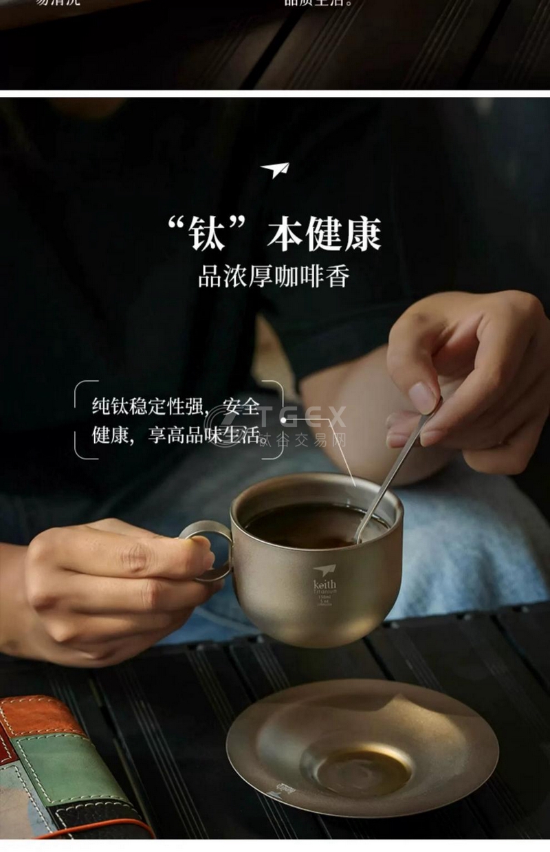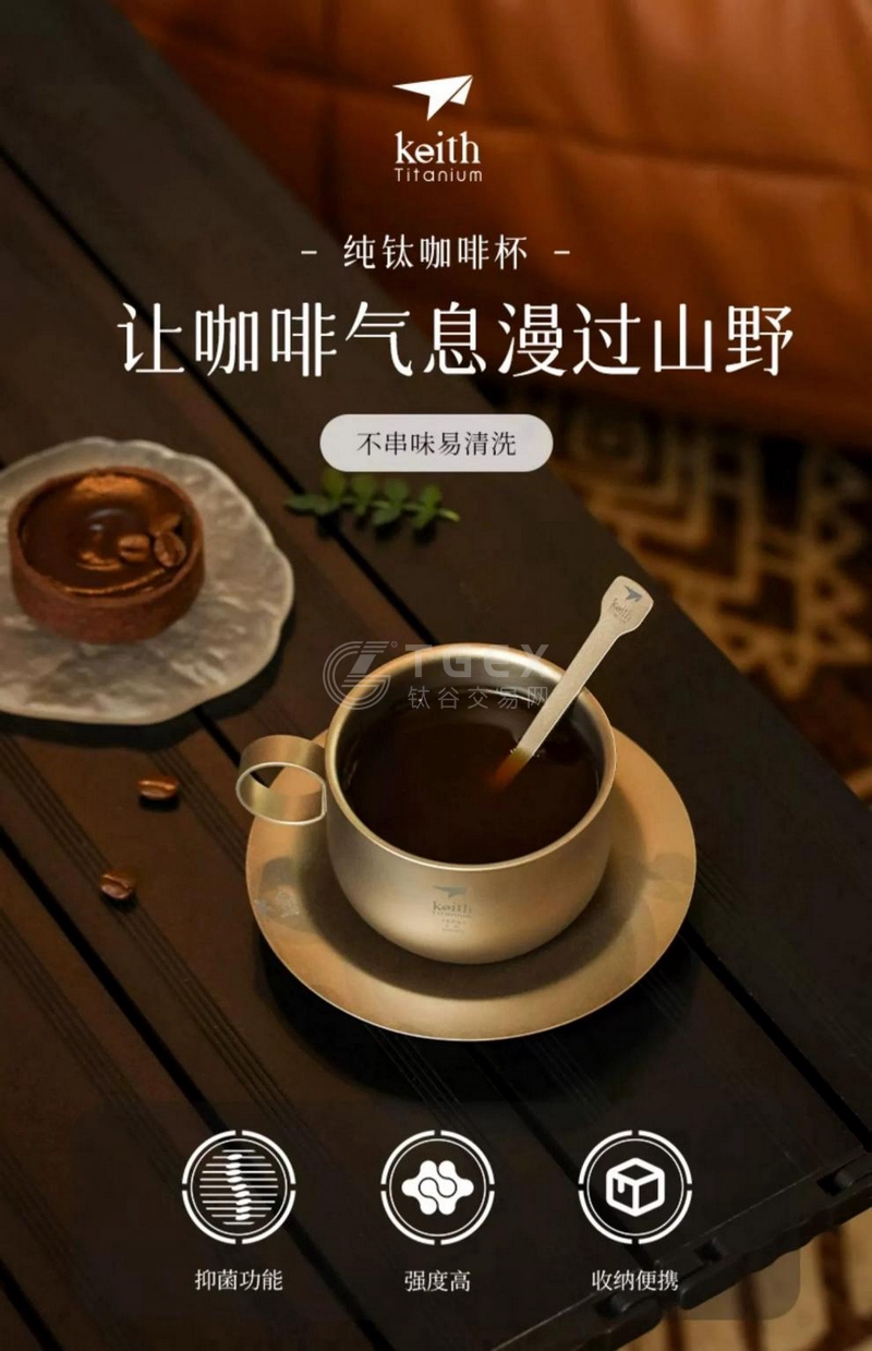 铠斯纯钛咖啡杯 家用纯钛杯茶杯奶杯套装茶具杯碟水杯C