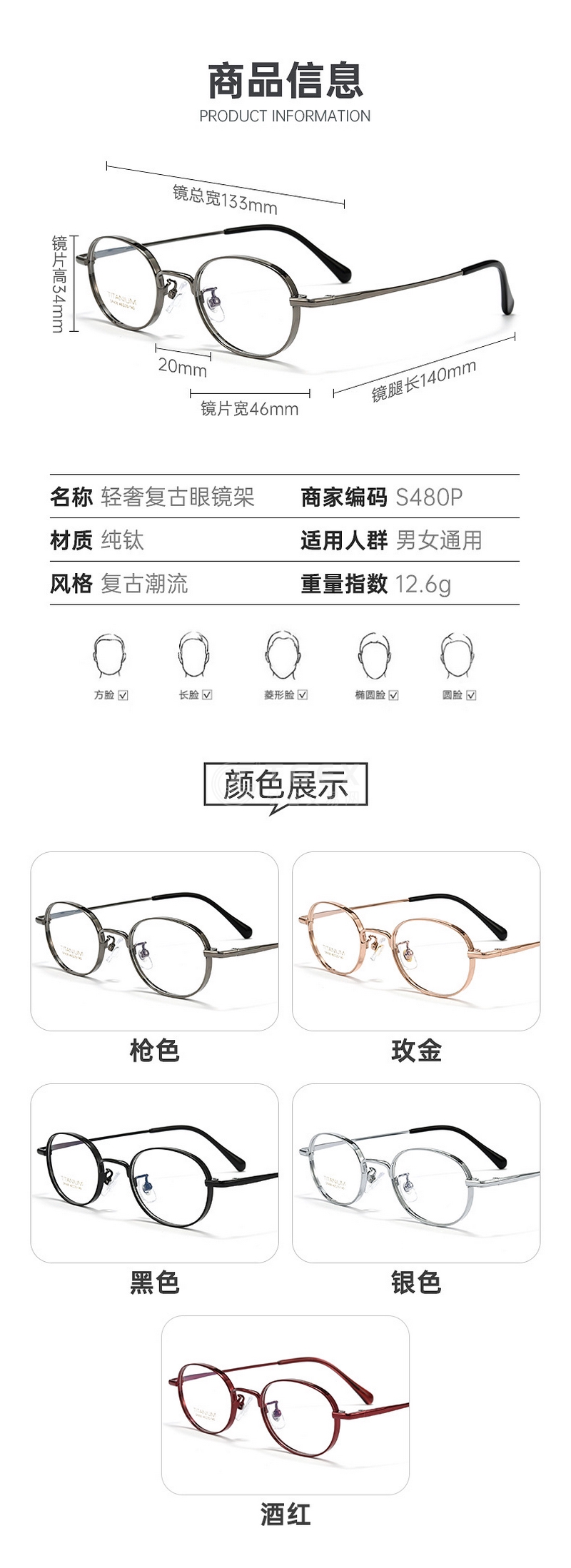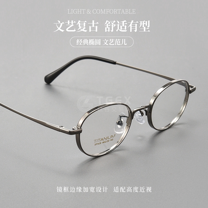 纯钛高度数近视女小框镜架眼镜宽边椭圆全框C