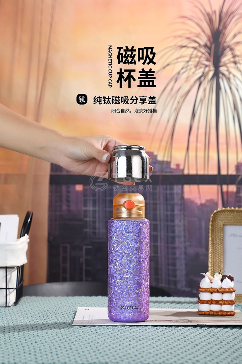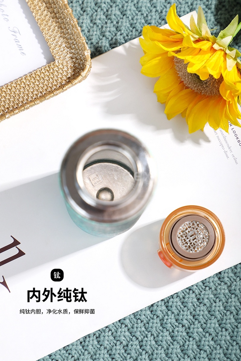 纯钛保温水杯商务弹跳盖磁吸盖高端茶水分离焖茶杯双层真空保温杯